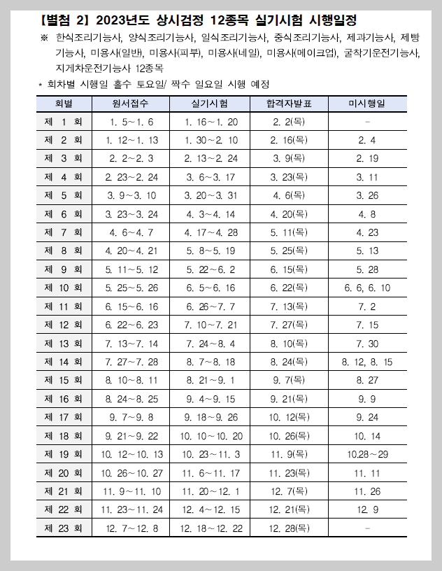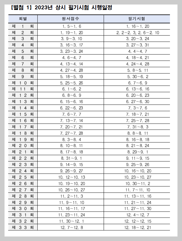 필기시험 시행일정