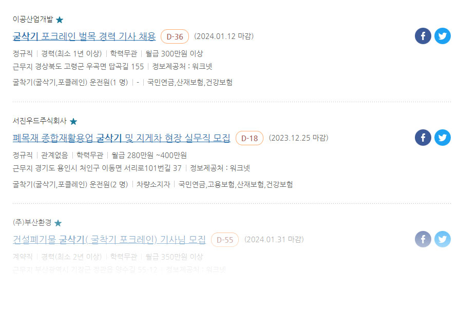 2. 굴삭기 운전기능사 일당, 연봉