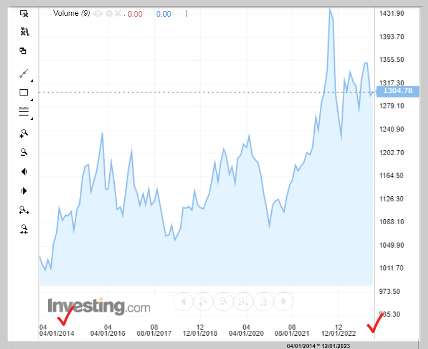 최고점을 찍었을 때보다 내려오긴 했지만 10년으로 놓고 봤을 때는 많이 오른 모습입니다.