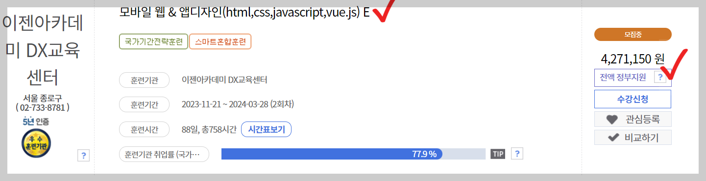 내일 배움 카드 발급받아 국비지원으로 수강하는 절차는 아래와 같습니다.