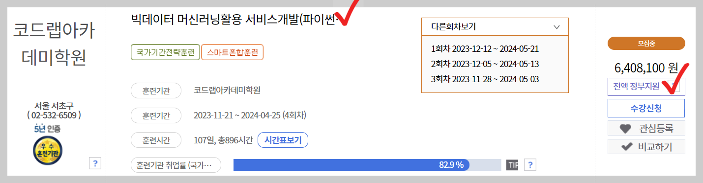 코딩교육은 국가전략 과목이기 때문에 500만 원이 넘어가도 전액 지원받고 수강할 수 있습니다.