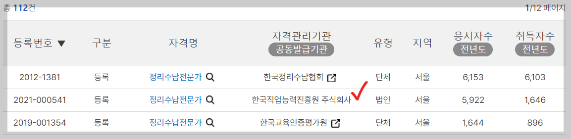 실제로 민간자격검색시 종합 자격증교육기관으로는 한국직업능력진흥원이 가장 응시자가 높습니다.