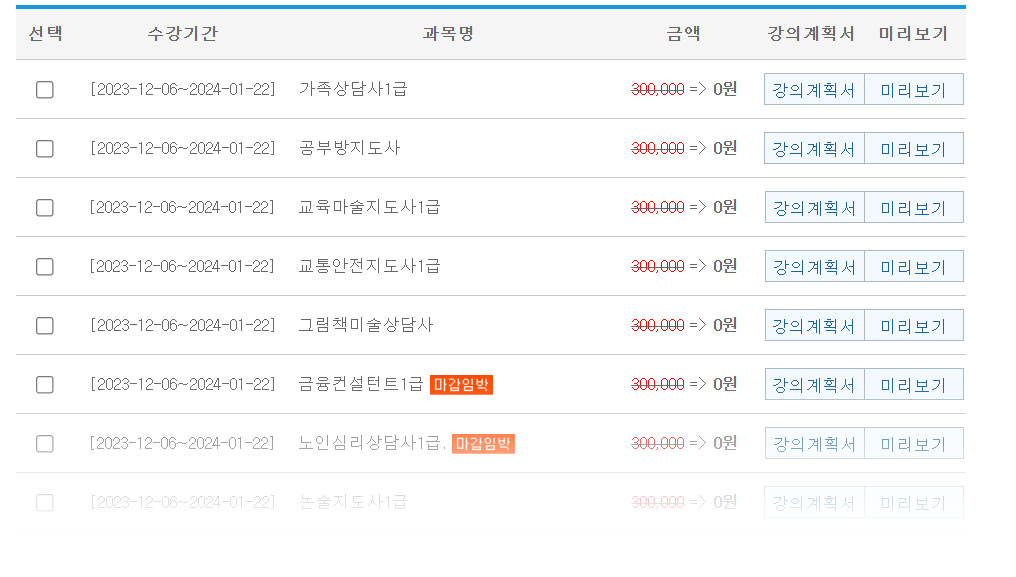 장학혜택과정 : 협회지원을 통해 회원가입 시 최대 3 과정까지 무료수강 교육 나눔