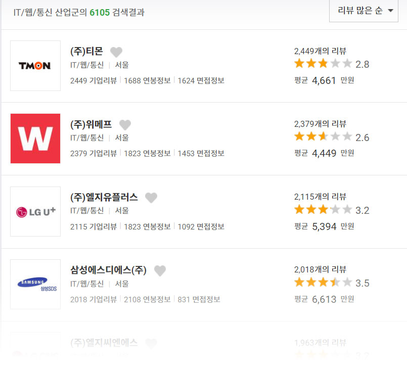 잡플래닛에서 보면 개발자의 IT 산업군 기업 6105개의 개발자 연봉을 볼 수 있습니다.